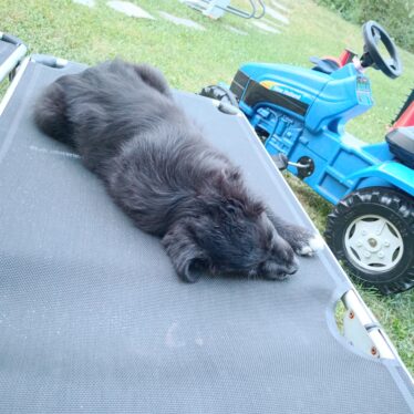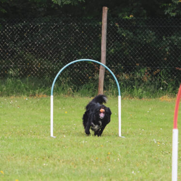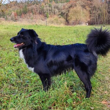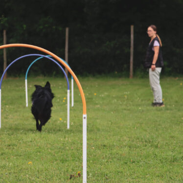Beim Hoopers ist er mit Feuereifer dabei und arbeitet unglaublich toll in der Distanz. Außerdem arbeiten wir derzeit auf die IBGH2 hin und er zeigt sich stets sehr lernwillig und ist sehr konzentriert bei der Arbeit.