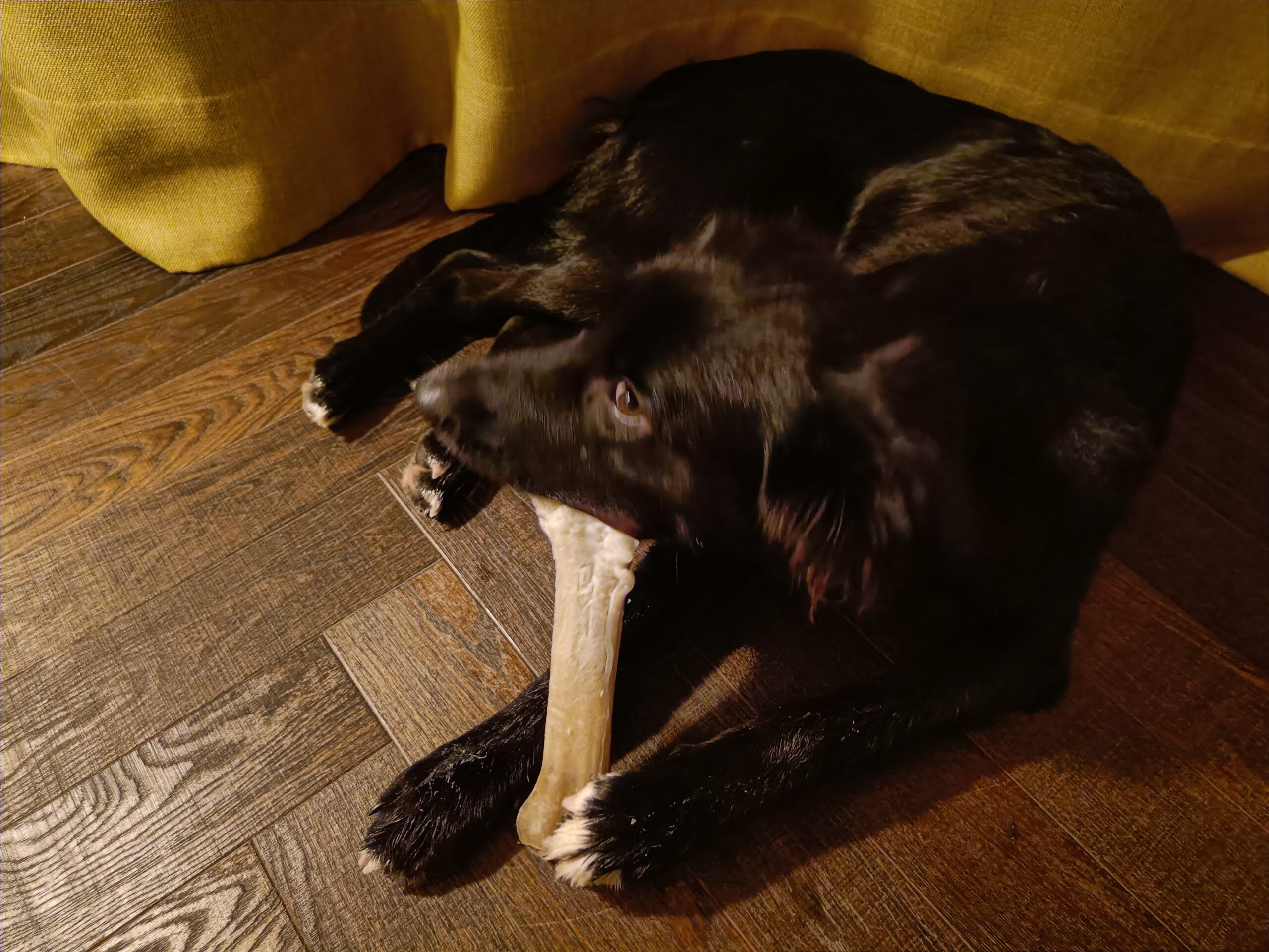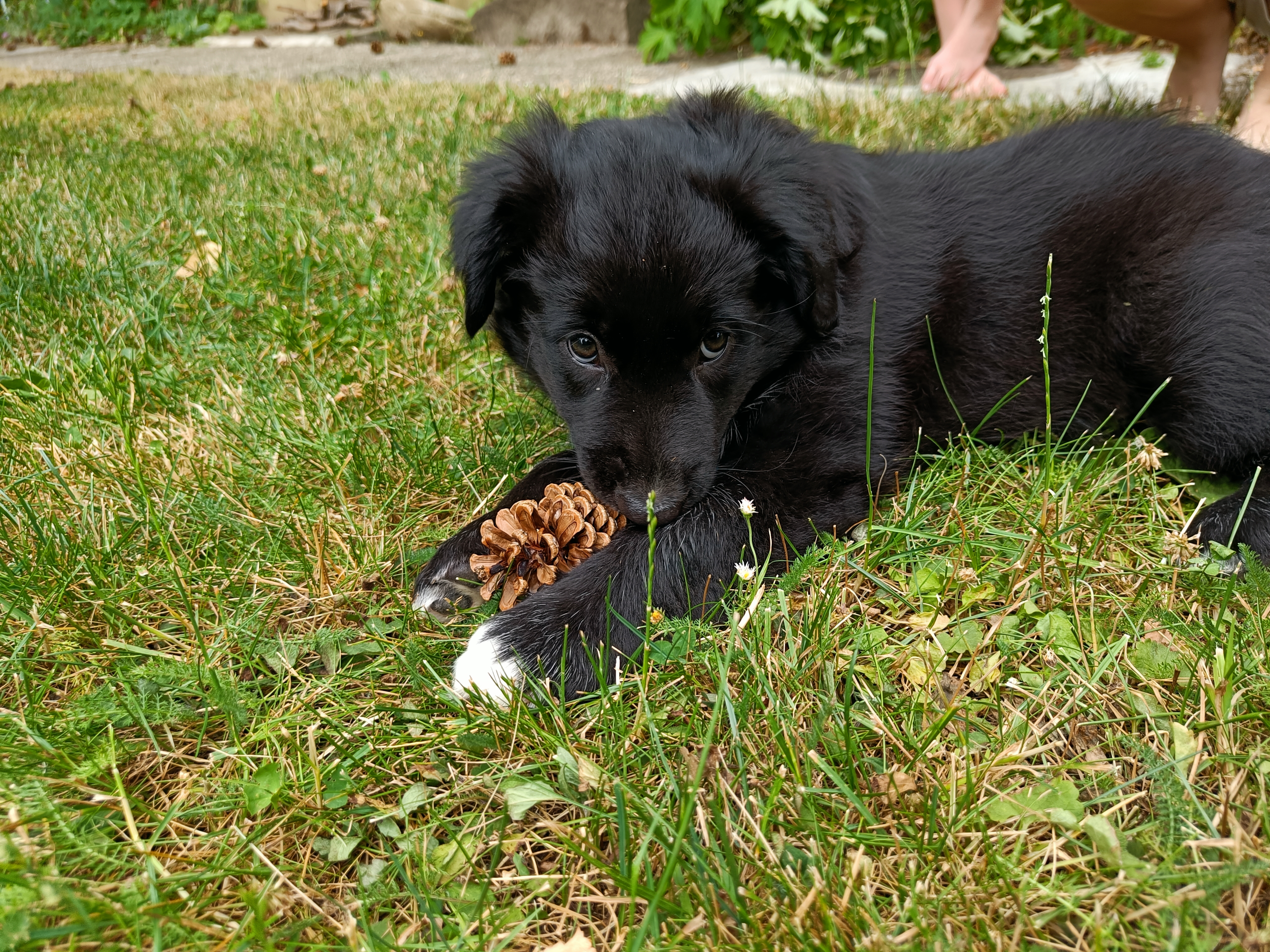 Fahrradfahrer, ballspielende Kinder etc interessieren ihn überhaupt nicht. Auch Kühe, Pferde und Schafe lässt er verlässlich links liegen. Wenn er mit „seinen“ Mädels unterwegs ist, zeigt er gegenüber fremden Rüden Beschützerinstinkt, was jedoch gut händelbar ist.